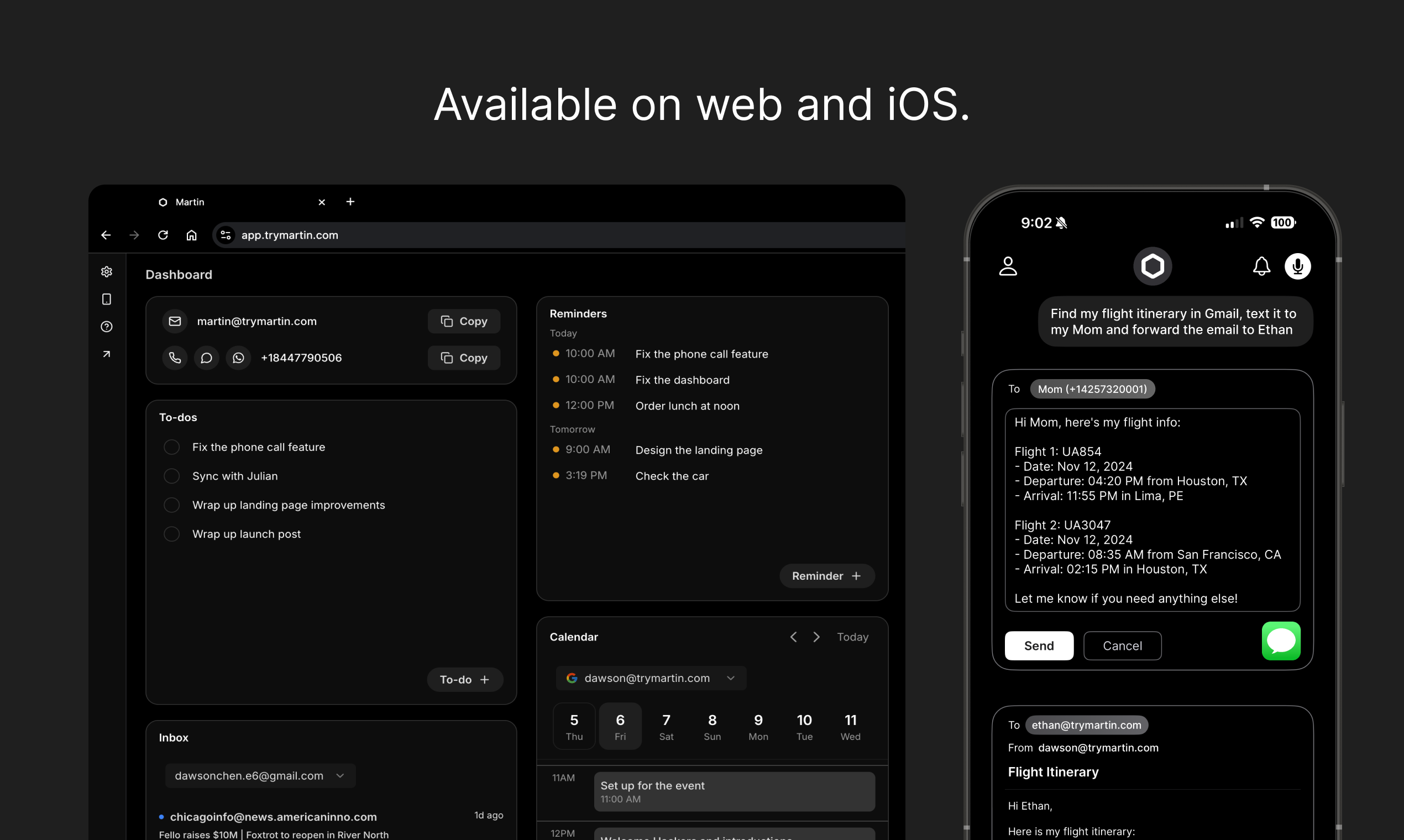 Martin excels at multi-step task execution, autonomously creating to-dos, reminders, and notes in a single workflow. Its hallucination resistance is excellent — it refused to fabricate Enterprise plan details and directed users to authoritative sources. Error handling is top-tier: it correctly identified impossible past-date scheduling, refused to draft misleading emails while offering ethical alternatives, and searched for non-existent reminders without inventing false results. Email drafting quality is production-ready with appropriate tone calibration. Meeting summarization with action item extraction is comprehensive and well-structured. The agent proactively offers follow-up actions (drafting templates, creating reminders) which adds significant value.